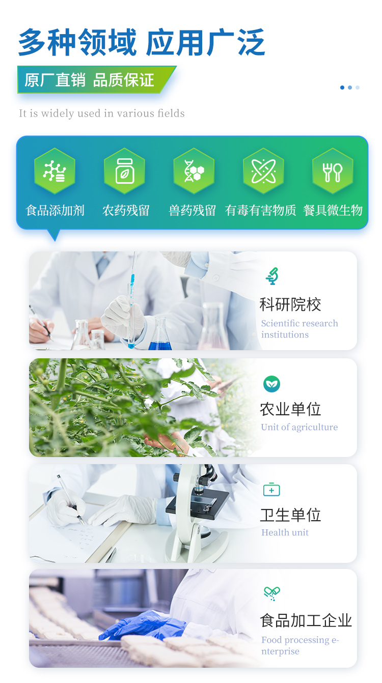 | 儀器采用臺式一體化系統(tǒng)檢測技術(shù),將分光光度模塊、新型農(nóng)殘檢測模塊、數(shù)字化管理模塊、無線通訊模塊高度集成于一體,支持檢測200種食品安全檢測項目,同時預(yù)留升級檢測方法。 | 儀器檢測模塊標(biāo)準(zhǔn)化、智能化,可隨意自由組合。檢測箱體內(nèi)置多個標(biāo)準(zhǔn)檢測單元,檢測模塊可以調(diào)整配置。 | 儀器采用全新安卓智能系統(tǒng),主控芯片采用 ARM Cortex-A7,RK3288/4核處理器,10.1寸高清液晶觸摸豎屏,更加**的UI交互界面,運轉(zhuǎn)快捷;儀器配備無線通信模塊: 4G(APN)通訊模塊、Wifi模塊,藍(lán)牙傳輸,同時具有雙USB接口以及RJ45接口能以多種方式實現(xiàn)數(shù)據(jù)保存和數(shù)據(jù)傳輸功能。 | 創(chuàng)新檢測模式: | ★檢測通道:≥12通道;采用精密旋轉(zhuǎn)比色池設(shè)計,使用同芯片同光源校準(zhǔn)精度,解決不同光源之間的誤差值。1-12通道間誤差0.1%。(**號:ZL202022821055.2) | ★儀器具有自動識別比色皿檢測功能,即:將樣品比色皿放入儀器后,點擊樣品檢測,儀器自動識別比色皿進(jìn)行通道檢測。 | 進(jìn)口高精光源: | 高精度進(jìn)口四波長冷光源,通道配置 410、520、590、630nm 波長光源,一個光源芯片驅(qū)動一個光源,誤差極小,每臺設(shè)備單獨**校準(zhǔn)光源,**比對,同時參照四種不同波段光源全方位覆蓋市面上99%的農(nóng)殘食品項目檢測。 | 智能化操作系統(tǒng): | 便捷操作系統(tǒng):設(shè)備檢測時可在同一檢測界面自動對應(yīng)相關(guān)檢測通道一次性選擇1-12個樣品名稱,無須退出界面,節(jié)省操作時間。 | 數(shù)據(jù)集成系統(tǒng):設(shè)備首頁自動統(tǒng)計檢測數(shù)據(jù)包含:周檢測數(shù)據(jù)、月檢測數(shù)據(jù),全部檢測總數(shù)量,均包含檢測總數(shù),合格數(shù),不合格數(shù),以及相關(guān)柱形分析圖,對各項檢測數(shù)據(jù)清晰掌握,無需電腦查詢,更加快捷直觀。 | 項目預(yù)設(shè)系統(tǒng):支持添加單個及多個相同或不相同的任務(wù)預(yù)設(shè),一鍵快速調(diào)取,每一個任務(wù)分別可以設(shè)置不同的樣品、批次、編號、來源、備注、抽樣信息、檢測信息、受檢信息、復(fù)核信息等更多信息。無縫鏈接平臺和APP實時查看下發(fā)任務(wù)。 | 數(shù)據(jù)監(jiān)管系統(tǒng):同步對接監(jiān)管平臺,數(shù)據(jù)可局域網(wǎng)和互聯(lián)網(wǎng)數(shù)據(jù)上傳,檢測結(jié)果可選擇直接傳至食品安全監(jiān)管平臺。集成OSS輸出存儲服務(wù)、區(qū)分設(shè)備定向管理應(yīng)用,進(jìn)行區(qū)域食品安全監(jiān)管及大數(shù)據(jù)分析處理與數(shù)據(jù)統(tǒng)計,檢測區(qū)域食品安全長短期動態(tài),達(dá)到食品安全問題預(yù)估、預(yù)警。 | 自定義打印系統(tǒng):內(nèi)置全新打印系統(tǒng),新創(chuàng)自定義打印方式,可按需靈活設(shè)置開啟或關(guān)閉:產(chǎn)品合格證(國家農(nóng)業(yè)部標(biāo)準(zhǔn)要求),二維碼,抽樣信息、檢測信息,受檢信息、復(fù)核信息、抽樣日期、檢測日期等信息的打印。 | 系統(tǒng)遠(yuǎn)程更新功能:可定向分客戶分儀器更新系統(tǒng),按照不同客戶后期實際需求添加項目,無需機器返廠,即可遠(yuǎn)程實時升級全新系統(tǒng),節(jié)省時間成本及避免運輸造成設(shè)備損壞。 | 儀器主機采用一體化防水、抗壓、防撞擊、防腐蝕箱體設(shè)計,同時配備交直流供電,可連接車載電源,可選配大容量充電鋰電池,滿足現(xiàn)場野外檢測需求。 | 安全證書,放心保障:儀器具有中國計量科學(xué)研究院校準(zhǔn)證書,**認(rèn)證。 |