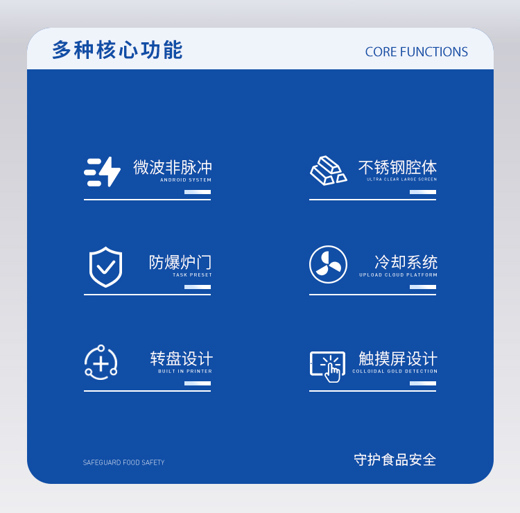 儀器采用微波非脈沖連續(xù)自動(dòng)變頻控制,延長了儀器的使用壽命和電磁波的均勻性,腔體采用52L大容積316L不銹鋼腔體材料制成,自鎖式緩沖防爆爐門,當(dāng)反應(yīng)異常時(shí),緩沖結(jié)構(gòu)確保操作人員人身安全和爐門結(jié)構(gòu)完整無損,爐門和腔體結(jié)合緊密,微波泄漏符合國家標(biāo)準(zhǔn)。儀器采用溫、壓雙控系統(tǒng)對(duì)消解實(shí)驗(yàn)的壓力和溫度進(jìn)行控制,實(shí)時(shí)顯示。360°同向連續(xù)旋轉(zhuǎn),微波均勻,確定各個(gè)樣品微波環(huán)境相同,提高實(shí)驗(yàn)結(jié)果的一致性。當(dāng)罐內(nèi)的壓力超過設(shè)定的保護(hù)值時(shí),微波會(huì)自動(dòng)停止加熱。安全防爆膜具有雙保險(xiǎn)功能,當(dāng)罐內(nèi)的壓力超過防爆膜所能承受的壓力時(shí),防爆膜先行破裂,氣體瀉出,防止罐體受損和對(duì)人體的傷害。