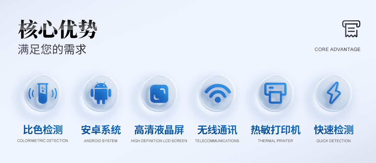 | PH、溶解氧、氨氮、亞硝酸鹽、總堿度、硫化氫、鹽度、磷酸鹽、總硬度、水溫、余氯、檢測指標等 | 安卓智能系統(tǒng)操作更佳簡便快捷 | 內置操作流程、操作簡單、無需培訓、直接上手 | 檢測速度快,現(xiàn)場讀取數(shù)據(jù) | 便攜式體積小,重量輕,方便戶外檢測 | 外形小巧美觀,工作穩(wěn)定免維護,具有較好的性價比 | 采用進口冷光源,光學性能穩(wěn)定,壽命長達10萬小時 |