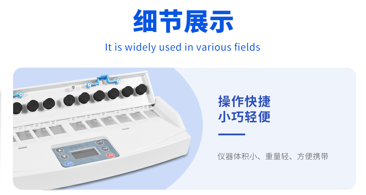 | ◆ 12通道,同時(shí)快速檢測(cè),每個(gè)樣品由程序控制分別獨(dú)立工作,不會(huì)互相干擾 | ◆ 儀器體積小、重量輕、無(wú)配件,方便攜帶 | ◆ 操作快捷,尤其適合現(xiàn)場(chǎng)使用 | ◆內(nèi)置大容量電池,在無(wú)外接電源時(shí)可連續(xù)工作4小時(shí) | ◆ 提供完備的附件配置,采用美觀、耐用的鋁合金包裝箱 | ◆ 采用新型儀器結(jié)構(gòu)設(shè)計(jì),體積小,便于攜帶。無(wú)機(jī)械移動(dòng)部件,抗干擾、抗振動(dòng),檢測(cè)精度高,儀器壽命長(zhǎng) |