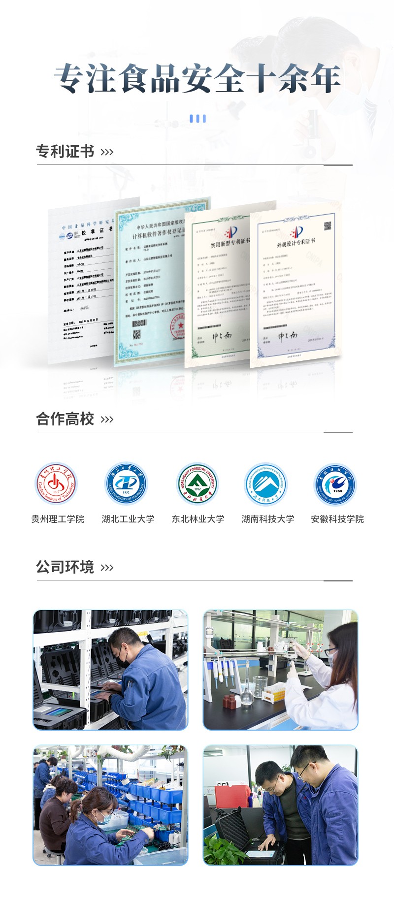 | 儀器采用臺(tái)式一體化系統(tǒng)檢測(cè)技術(shù),將分光光度模塊、新型農(nóng)殘檢測(cè)模塊、數(shù)字化管理模塊、無線通訊模塊高度集成于一體,支持檢測(cè)200種食品安全檢測(cè)項(xiàng)目,同時(shí)預(yù)留升級(jí)檢測(cè)方法。 | 儀器檢測(cè)模塊標(biāo)準(zhǔn)化、智能化,可隨意自由組合。檢測(cè)箱體內(nèi)置多個(gè)標(biāo)準(zhǔn)檢測(cè)單元,檢測(cè)模塊可以調(diào)整配置。 | 儀器采用全新安卓智能系統(tǒng),主控芯片采用 ARM Cortex-A7,RK3288/4核處理器,10.1寸高清液晶觸摸豎屏,更加**的UI交互界面,運(yùn)轉(zhuǎn)快捷;儀器配備無線通信模塊: 4G(APN)通訊模塊、Wifi模塊,藍(lán)牙傳輸,同時(shí)具有雙USB接口以及RJ45接口能以多種方式實(shí)現(xiàn)數(shù)據(jù)保存和數(shù)據(jù)傳輸功能。 | 創(chuàng)新檢測(cè)模式: | ★檢測(cè)通道:≥12通道;采用精密旋轉(zhuǎn)比色池設(shè)計(jì),使用同芯片同光源校準(zhǔn)精度,解決不同光源之間的誤差值。1-12通道間誤差0.1%。(**號(hào):ZL202022821055.2) | ★儀器具有自動(dòng)識(shí)別比色皿檢測(cè)功能,即:將樣品比色皿放入儀器后,點(diǎn)擊樣品檢測(cè),儀器自動(dòng)識(shí)別比色皿進(jìn)行通道檢測(cè)。 | 進(jìn)口高精光源: | 高精度進(jìn)口四波長(zhǎng)冷光源,通道配置 410、520、590、630nm 波長(zhǎng)光源,一個(gè)光源芯片驅(qū)動(dòng)一個(gè)光源,誤差極小,每臺(tái)設(shè)備單獨(dú)**校準(zhǔn)光源,**比對(duì),同時(shí)參照四種不同波段光源全方位覆蓋市面上99%的農(nóng)殘食品項(xiàng)目檢測(cè)。 | 智能化操作系統(tǒng): | 便捷操作系統(tǒng):設(shè)備檢測(cè)時(shí)可在同一檢測(cè)界面自動(dòng)對(duì)應(yīng)相關(guān)檢測(cè)通道一次性選擇1-12個(gè)樣品名稱,無須退出界面,節(jié)省操作時(shí)間。 | 數(shù)據(jù)集成系統(tǒng):設(shè)備首頁(yè)自動(dòng)統(tǒng)計(jì)檢測(cè)數(shù)據(jù)包含:周檢測(cè)數(shù)據(jù)、月檢測(cè)數(shù)據(jù),全部檢測(cè)總數(shù)量,均包含檢測(cè)總數(shù),合格數(shù),不合格數(shù),以及相關(guān)柱形分析圖,對(duì)各項(xiàng)檢測(cè)數(shù)據(jù)清晰掌握,無需電腦查詢,更加快捷直觀。 | 項(xiàng)目預(yù)設(shè)系統(tǒng):支持添加單個(gè)及多個(gè)相同或不相同的任務(wù)預(yù)設(shè),一鍵快速調(diào)取,每一個(gè)任務(wù)分別可以設(shè)置不同的樣品、批次、編號(hào)、來源、備注、抽樣信息、檢測(cè)信息、受檢信息、復(fù)核信息等更多信息。無縫鏈接平臺(tái)和APP實(shí)時(shí)查看下發(fā)任務(wù)。 | 數(shù)據(jù)監(jiān)管系統(tǒng):同步對(duì)接監(jiān)管平臺(tái),數(shù)據(jù)可局域網(wǎng)和互聯(lián)網(wǎng)數(shù)據(jù)上傳,檢測(cè)結(jié)果可選擇直接傳至食品安全監(jiān)管平臺(tái)。集成OSS輸出存儲(chǔ)服務(wù)、區(qū)分設(shè)備定向管理應(yīng)用,進(jìn)行區(qū)域食品安全監(jiān)管及大數(shù)據(jù)分析處理與數(shù)據(jù)統(tǒng)計(jì),檢測(cè)區(qū)域食品安全長(zhǎng)短期動(dòng)態(tài),達(dá)到食品安全問題預(yù)估、預(yù)警。 | 自定義打印系統(tǒng):內(nèi)置全新打印系統(tǒng),新創(chuàng)自定義打印方式,可按需靈活設(shè)置開啟或關(guān)閉:產(chǎn)品合格證(國(guó)家農(nóng)業(yè)部標(biāo)準(zhǔn)要求),二維碼,抽樣信息、檢測(cè)信息,受檢信息、復(fù)核信息、抽樣日期、檢測(cè)日期等信息的打印。 | 系統(tǒng)遠(yuǎn)程更新功能:可定向分客戶分儀器更新系統(tǒng),按照不同客戶后期實(shí)際需求添加項(xiàng)目,無需機(jī)器返廠,即可遠(yuǎn)程實(shí)時(shí)升級(jí)全新系統(tǒng),節(jié)省時(shí)間成本及避免運(yùn)輸造成設(shè)備損壞。 | 儀器主機(jī)采用一體化防水、抗壓、防撞擊、防腐蝕箱體設(shè)計(jì),同時(shí)配備交直流供電,可連接車載電源,可選配大容量充電鋰電池,滿足現(xiàn)場(chǎng)野外檢測(cè)需求。 | 安全證書,放心保障:儀器具有中國(guó)計(jì)量科學(xué)研究院校準(zhǔn)證書,**認(rèn)證。 |