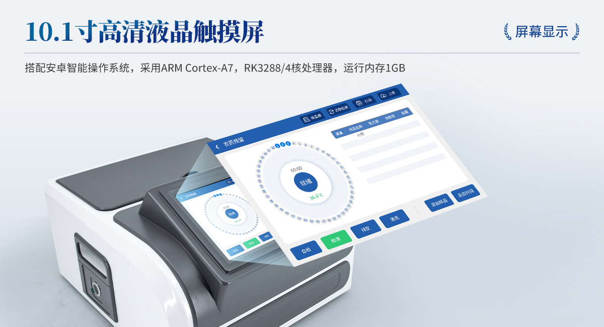 | 1. 試劑位置:3個(gè) | 2. 農(nóng)殘檢測(cè)盤:旋轉(zhuǎn)48通道比色盤,可任意選擇檢測(cè)通道,自動(dòng)對(duì)應(yīng)選擇通道。 | 3. 膠體金通道:6個(gè)單通道,1個(gè)三聯(lián)卡通道,可讀取檢測(cè)卡結(jié)果,自動(dòng)采集、處理分析,自動(dòng)判斷檢測(cè)結(jié)果,并具備自動(dòng)判空功能。 | 4.系統(tǒng)配置:10.1寸高清液晶觸摸屏,采用ARM Cortex-A7,RK3288/4核處理器,運(yùn)行內(nèi)存1GB。Android7.1.1 系統(tǒng)分辨率1280×800。 | 5.恒溫系統(tǒng):具有自動(dòng)加溫溫控系統(tǒng),精準(zhǔn)恒溫37℃,精度±0.1℃。 | 6.添加系統(tǒng):儀器按照試劑要求自動(dòng)、按時(shí)、按量加入試劑,并且自動(dòng)對(duì)未正常放置的樣本或異常的樣本進(jìn)行檢查并提示。 | 7.清洗功能:儀器具備回流及自動(dòng)清洗管路功能,避免試劑污染。 | 8.混勻功能:設(shè)備具備自動(dòng)混勻功能。 | 9.光源校準(zhǔn):設(shè)備可自動(dòng)校準(zhǔn),確保檢測(cè)準(zhǔn)確度。 | 10.實(shí)時(shí)監(jiān)控:儀器測(cè)試過程中屏幕顯示運(yùn)行狀態(tài),可實(shí)時(shí)查看。 | 11.數(shù)據(jù)存儲(chǔ):內(nèi)部存儲(chǔ)16GB,可存儲(chǔ)500萬條數(shù)據(jù)。 | 12.樣品多選功能:設(shè)備具備樣品一鍵多選功能,選擇樣品自動(dòng)匹配檢測(cè)通道。 | 13.項(xiàng)目預(yù)設(shè):可提前設(shè)置單個(gè)及多個(gè)相同或不相同的檢測(cè)任務(wù),可單次或者多次調(diào)取,減少檢測(cè)時(shí)間。 | 14.自定義打印系統(tǒng):內(nèi)置自定義打印系統(tǒng),可按需靈活設(shè)置開啟或關(guān)閉:產(chǎn)品合格證(國(guó)家農(nóng)業(yè)部標(biāo)準(zhǔn)),二維碼,抽樣信息、檢測(cè)信息,受檢信息等信息的打印。 | 15.A4版本報(bào)告打印功能:設(shè)備可自動(dòng)生成A4版報(bào)告,A4報(bào)告帶二維碼,可掃描二維碼生成電子版,并可識(shí)別真?zhèn)巍?/td> | 16.傳輸方式:儀器配備無線通信模塊: 4G(APN)通訊模塊、Wifi模塊,藍(lán)牙傳輸模塊,同時(shí)具有USB接口以及RJ45接口能以多種方式實(shí)現(xiàn)數(shù)據(jù)保存和數(shù)據(jù)傳輸功能,設(shè)備數(shù)據(jù)可以同步上傳至平臺(tái)。 | 17.數(shù)據(jù)監(jiān)管系統(tǒng):設(shè)備自帶監(jiān)管平臺(tái),并可同步對(duì)接監(jiān)管平臺(tái),數(shù)據(jù)可局域網(wǎng)和互聯(lián)網(wǎng)數(shù)據(jù)上傳,檢測(cè)結(jié)果可直接傳至食品安全監(jiān)管平臺(tái)。達(dá)到食品安全問題預(yù)估、預(yù)警。 | 18.系統(tǒng)遠(yuǎn)程更新功能:無需設(shè)備返廠,即可遠(yuǎn)程實(shí)時(shí)升級(jí)全新系統(tǒng),節(jié)省時(shí)間成本及避免運(yùn)輸造成設(shè)備損。 |