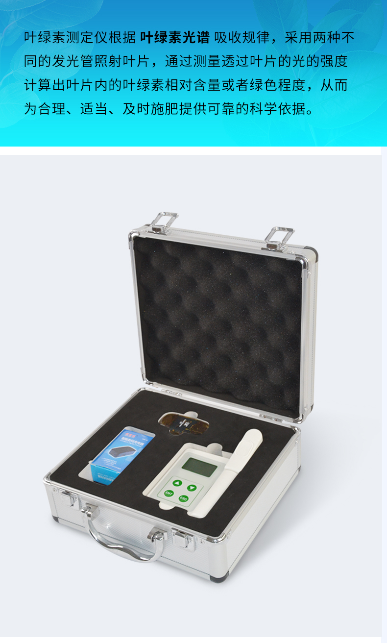 TY-YD葉綠素測(cè)定儀根據(jù)葉綠素光譜吸收規(guī)律,采用兩種不同的發(fā)光管照射葉片,通過(guò)測(cè)量透過(guò)葉片的光的強(qiáng)度計(jì)算出葉片內(nèi)的葉綠素相對(duì)含量或者綠色程度,從而為合理、適當(dāng)、及時(shí)施肥提供可靠的科學(xué)依據(jù),廣泛應(yīng)用于農(nóng)業(yè)、林業(yè)、植物等科學(xué)研究和生產(chǎn)指導(dǎo)。