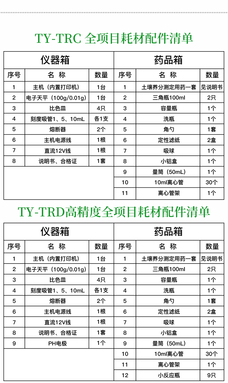 | 儀器整機(jī)質(zhì)保五年,終身免費(fèi)維修服務(wù),免費(fèi)郵寄儀器、免費(fèi)培訓(xùn)、免費(fèi)提供檢測(cè)試劑。 | 終身免費(fèi)提供土肥等農(nóng)業(yè)相關(guān)技術(shù)支持! | 配置清單(兩個(gè)鋁合金箱子): |