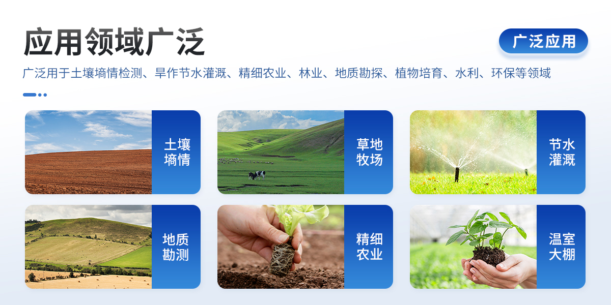 土壤水分溫度鹽分測定儀傳感器采用一體化結(jié)構(gòu)設(shè)計,可快速準(zhǔn)確測量土壤中含水量、溫度和電導(dǎo)率(鹽分),可對多處樣地、不同土壤深度的水分含量溫度和鹽分進(jìn)行快速檢測和長期連續(xù)監(jiān)測。廣泛應(yīng)用于土壤墑情檢測、旱作節(jié)水灌溉、精細(xì)農(nóng)業(yè)、林業(yè)、地質(zhì)勘探、植物培育、水利、環(huán)保等領(lǐng)域。