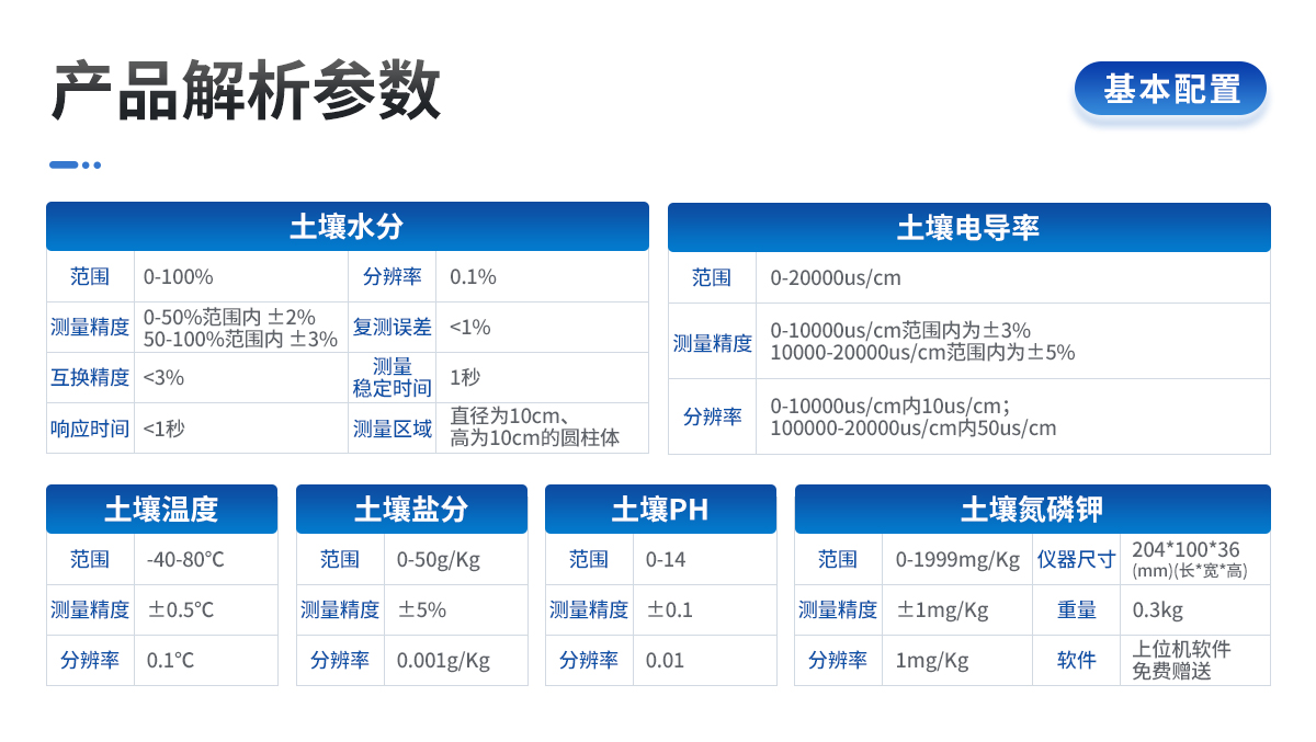 產(chǎn)品描述:產(chǎn)品簡介:土壤水分溫度鹽分測定儀傳感器采用一體化結(jié)構(gòu)設(shè)計,可快速準(zhǔn)確測量土壤中含水量、溫度和電導(dǎo)率(鹽分),可對多處樣地、不同土壤深度的水分含量溫度和鹽分進(jìn)行快速檢測和長期連續(xù)監(jiān)測。廣泛應(yīng)用于土壤墑情檢測、旱作節(jié)水灌溉、精細(xì)農(nóng)業(yè)、林業(yè)、地質(zhì)勘探、植物培育、水利、環(huán)保等領(lǐng)域。功能介紹:儀器可加配【詳情】