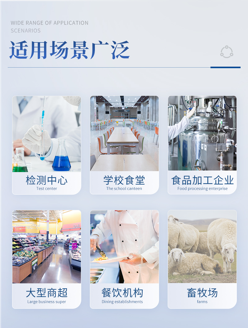 該多功能食品安全檢測儀為集成化食品安全快速檢測分析設(shè)備,廣泛應(yīng)用于市場監(jiān)管局、食品肉產(chǎn)品深加工企業(yè)、學(xué)校食堂、衛(wèi)生部門、畜牧部門、屠宰場、檢驗(yàn)檢疫部門等單位使用。